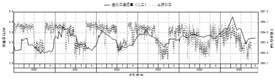 近五年进水口基础廊道渗流量折线图 |
