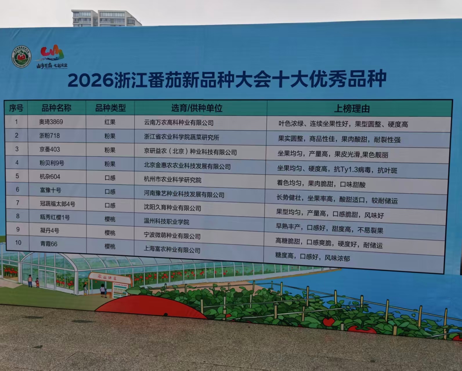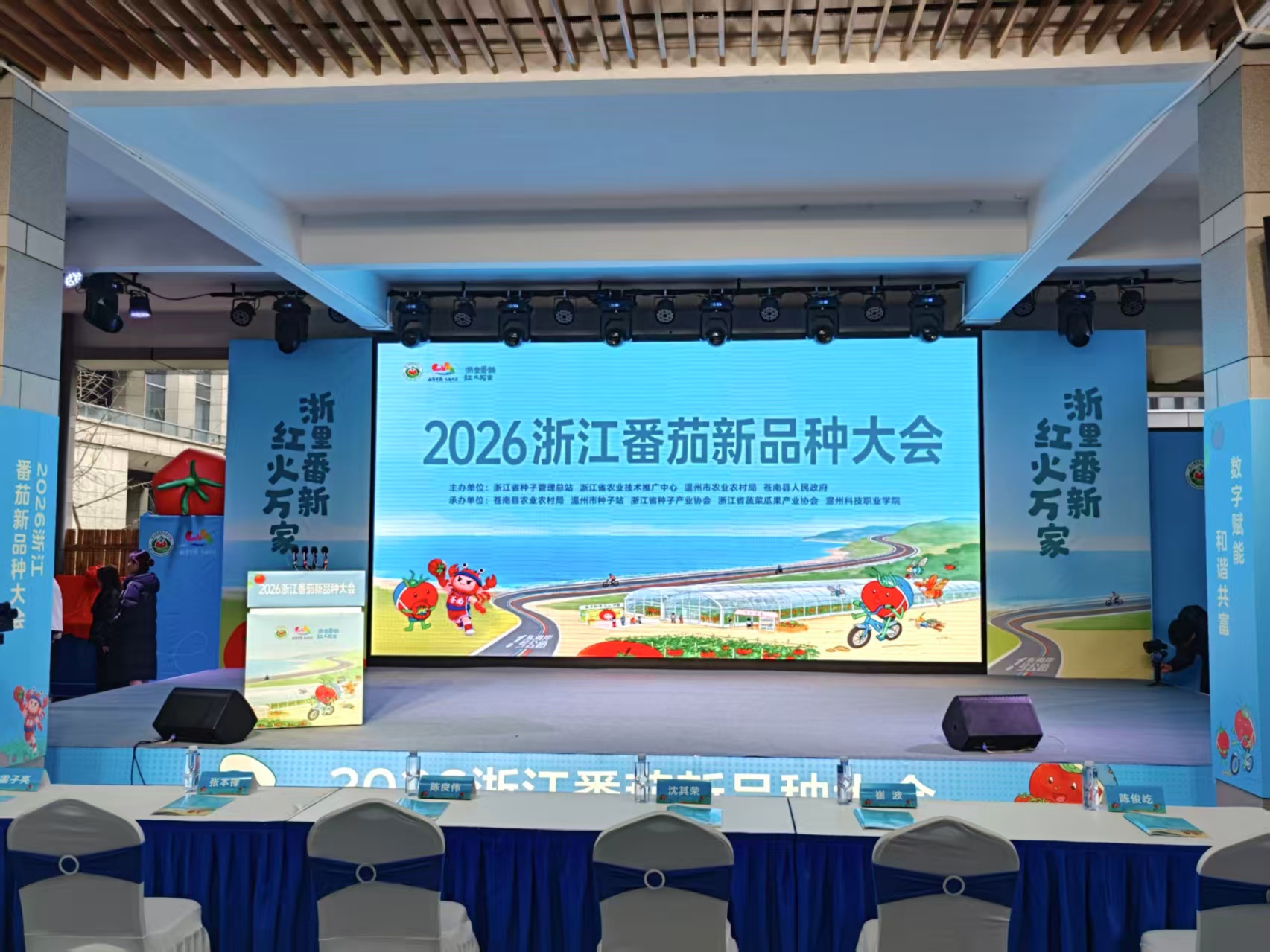 *月**日至**日,****浙江番茄新品种大会在温州苍南举行。这场汇聚院士专家、育种精英、产销大咖与种植农户的农业盛会,以新品种、新技术、新农机、新模式、新渠道为核心,全面展现浙江番茄产业创新成果。一颗小小的番茄,从田间地头走向市场餐桌,从单一种植迈向全链发展,成为浙江设施农业提质增效、助力乡村共富的生动缩影。