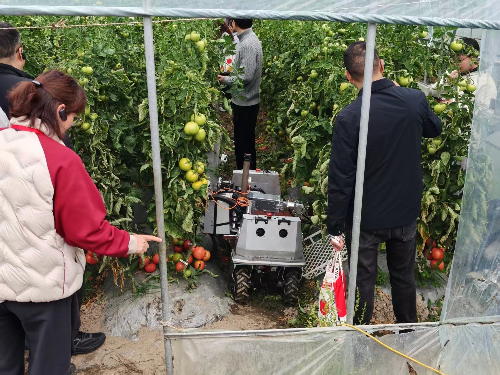 农场内,**项高品质番茄栽培关键技术集中展示,田间机器人演示采摘、打叶作业,高压弥雾设备精准施药,数字化管理系统实时监控长势,一幅科技感满满的“未来农场”画卷徐徐展开。土壤连作障碍综合治理、病虫害绿色防控、设施大棚环境监测、土壤养分监测等技术一应俱全,宽沟窄畦种植、废弃物处理等绿色模式全面落地,真正实现良种良法良机配套。更具创新的是“数字地展”模式,每个品种、每项技术的示范牌上都印有专属二维码,参会人员扫码即可通过专属小程序查看全生育期生长数据。