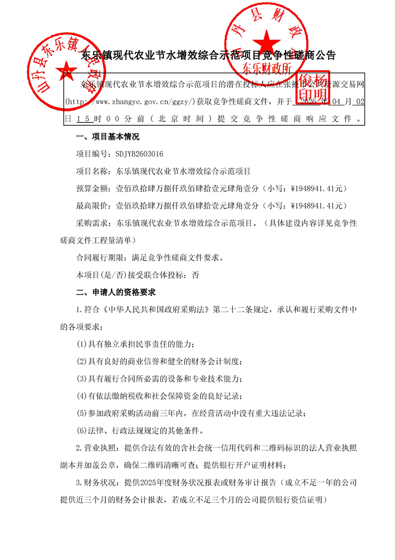 【正常公告】东乐镇现代农业节水增效综合示范项目