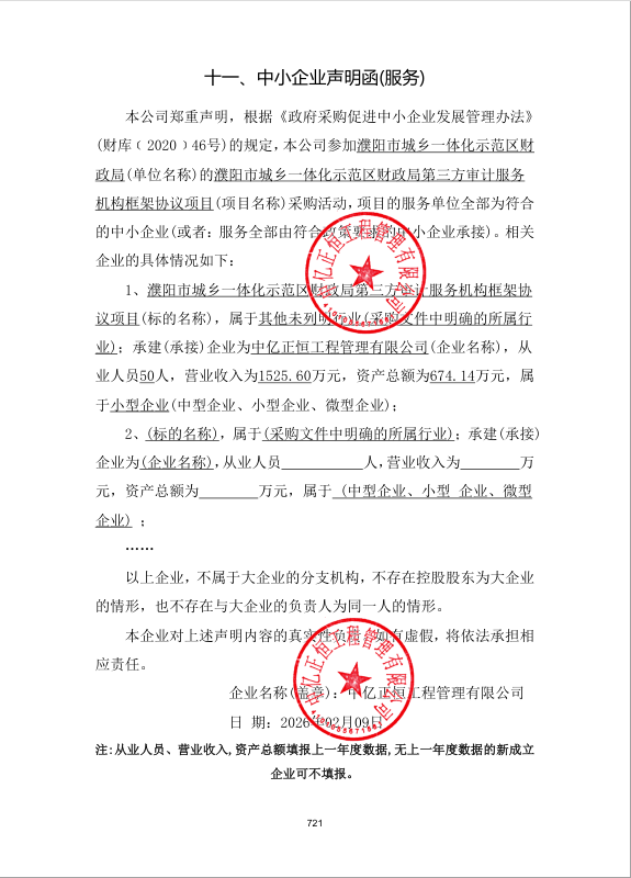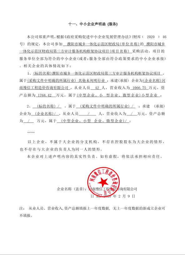 濮阳市城乡一体化示范区财政局第三方审计服务机构框架协议项目*中标公告