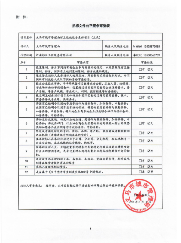 | *、项目名称:义马市城市管理局环卫设施设备更新项目(三次) | |||||||||||