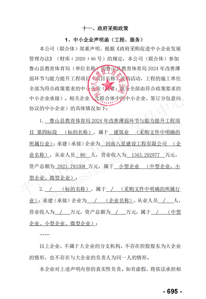 【平公资建*******号】鲁山县教育体育局****年改善薄弱环节与能力提升工程项目(第一标段)中标候选人公示