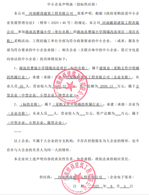 渑池县曹端小学围墙改造项目-成交公告