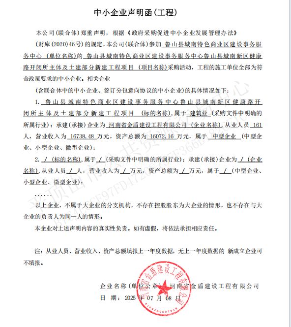 *、项目名称:鲁山县城南特色商业区建设事务服务中心鲁山县城南新区健康路开闭所主体及土建部分新建工程项目