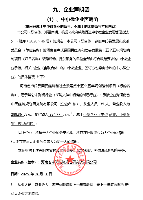 卢氏县发展和改革委员会河南省卢氏县国民经济和社会发展第十五个五年规划编制项目*成交公告