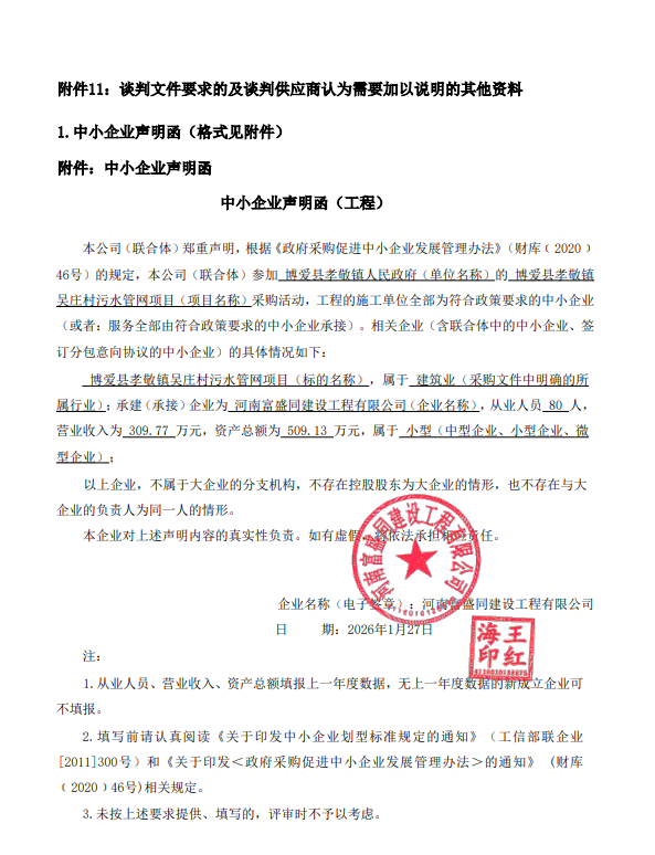 | *、采购项目名称:博爱县孝敬镇吴庄村污水管网项目 | |||||||||||||||||||||||||||||||