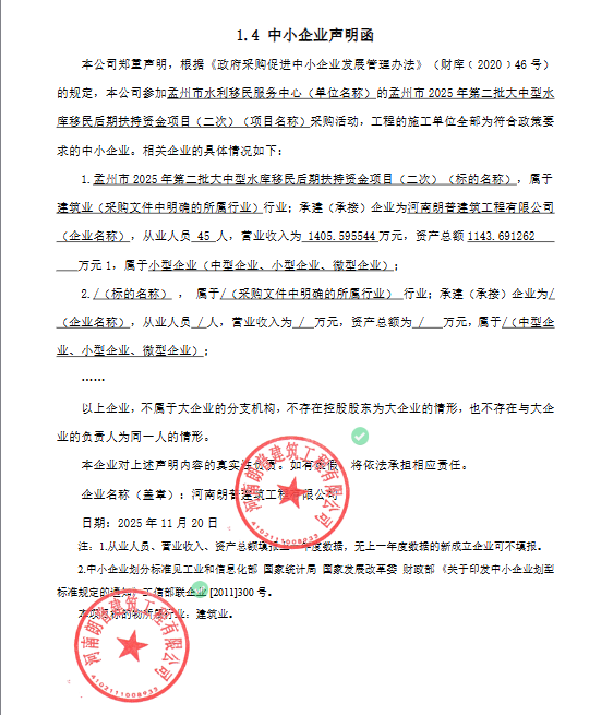 孟州市水利移民服务中心孟州市2025年第二批大中型水库移民后期扶持资金项目(二次)-成交公告