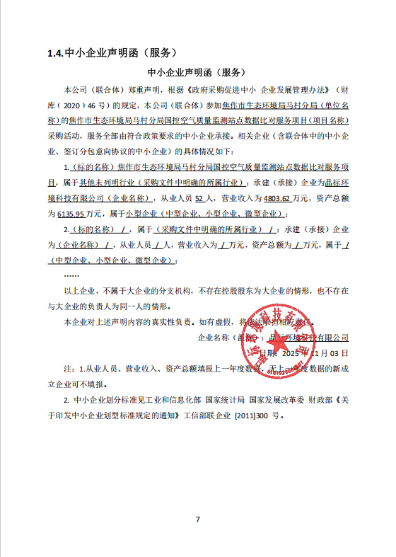 | *、采购项目名称:焦作市生态环境局马村分局国控空气质量监测站点数据比对服务项目 | |||||||||||||||||||||||||||||||