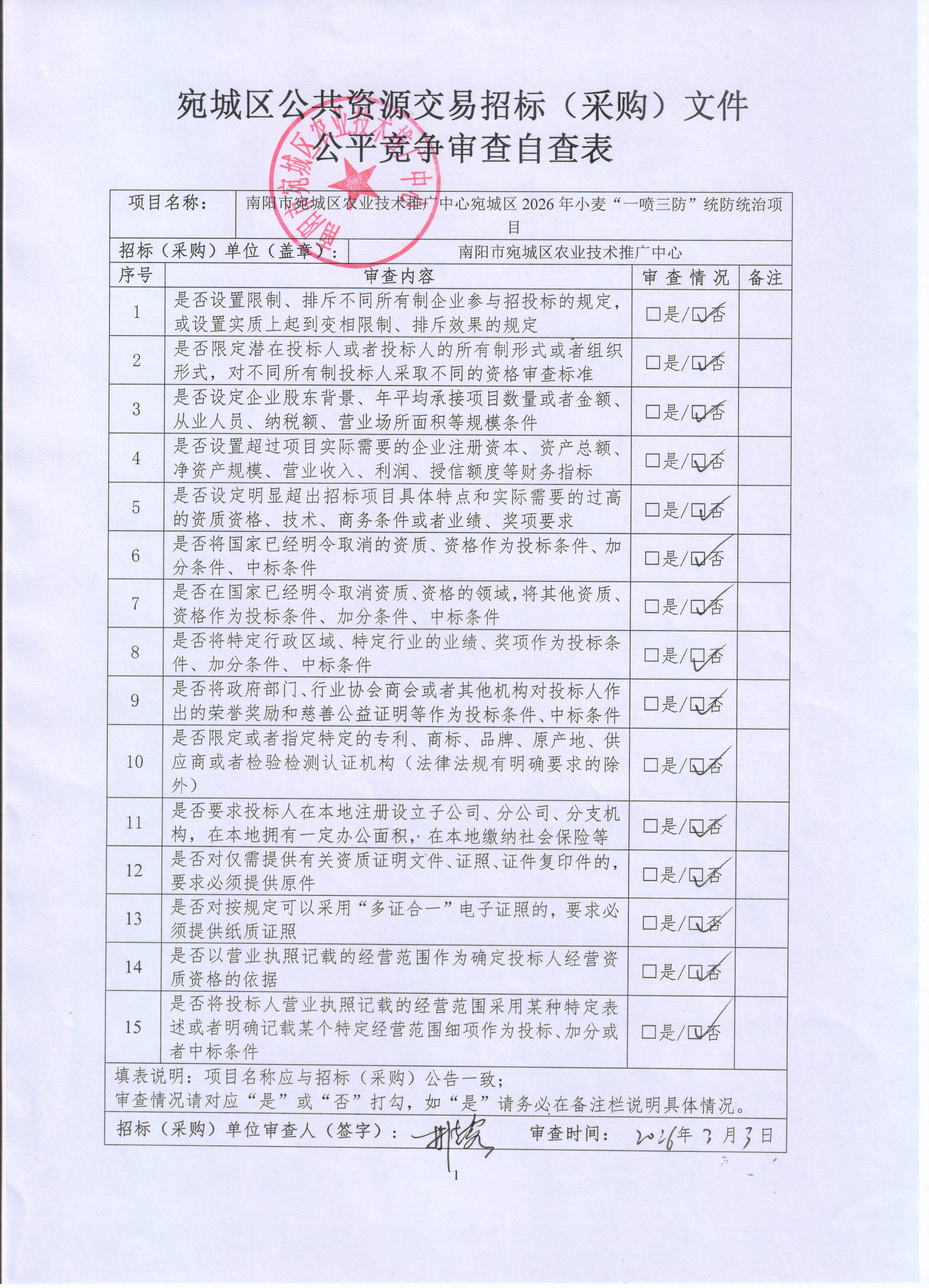 南阳市宛城区农业技术推广中心宛城区2026年小麦“一喷三防”统防统治项目-公开招标公告