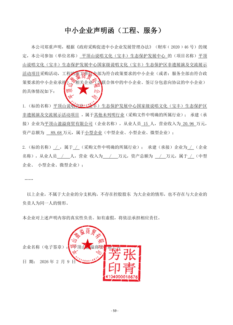 | *、采购项目名称:平顶山说唱文化(宝丰)生态保护发展中心国家级说唱文化(宝丰)生态保护区非遗展演及交流展示活动项目 | |||||||||||||||||||||||||||||||
