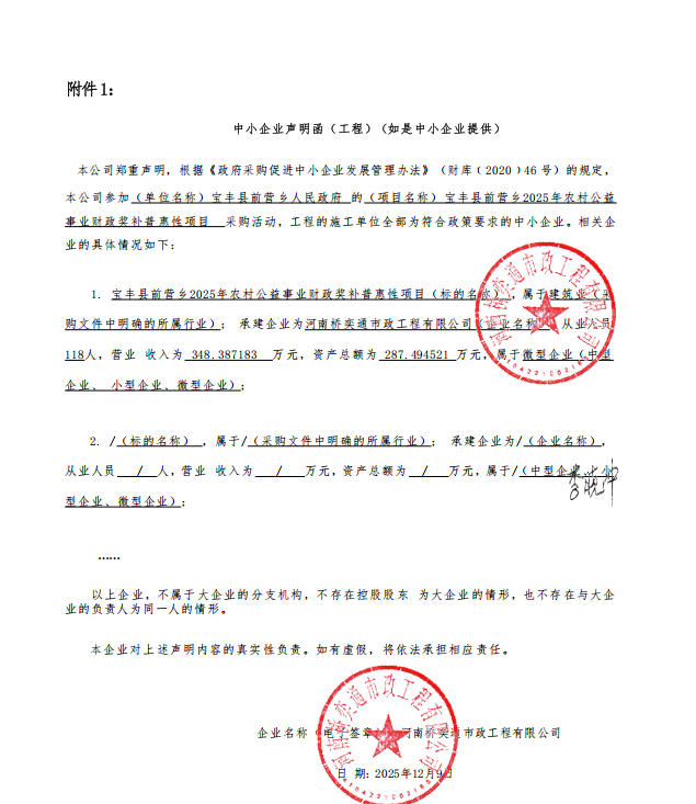宝丰县前营乡人民政府宝丰县前营乡2025年农村公益事业财政奖补普惠性项目-成交公告