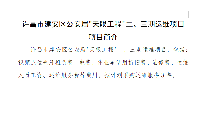 许昌市建安区公安局"天眼工程"二、三期运维项目 项目简介****年*至**月政府采购意向