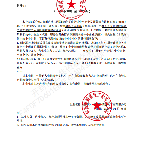 尉氏县水利局尉氏县文家支渠抗旱应急提灌泵站建设项目*成交公告