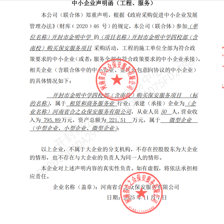 开封市金明中学四校部(含南校)购买保安服务项目-中标公告