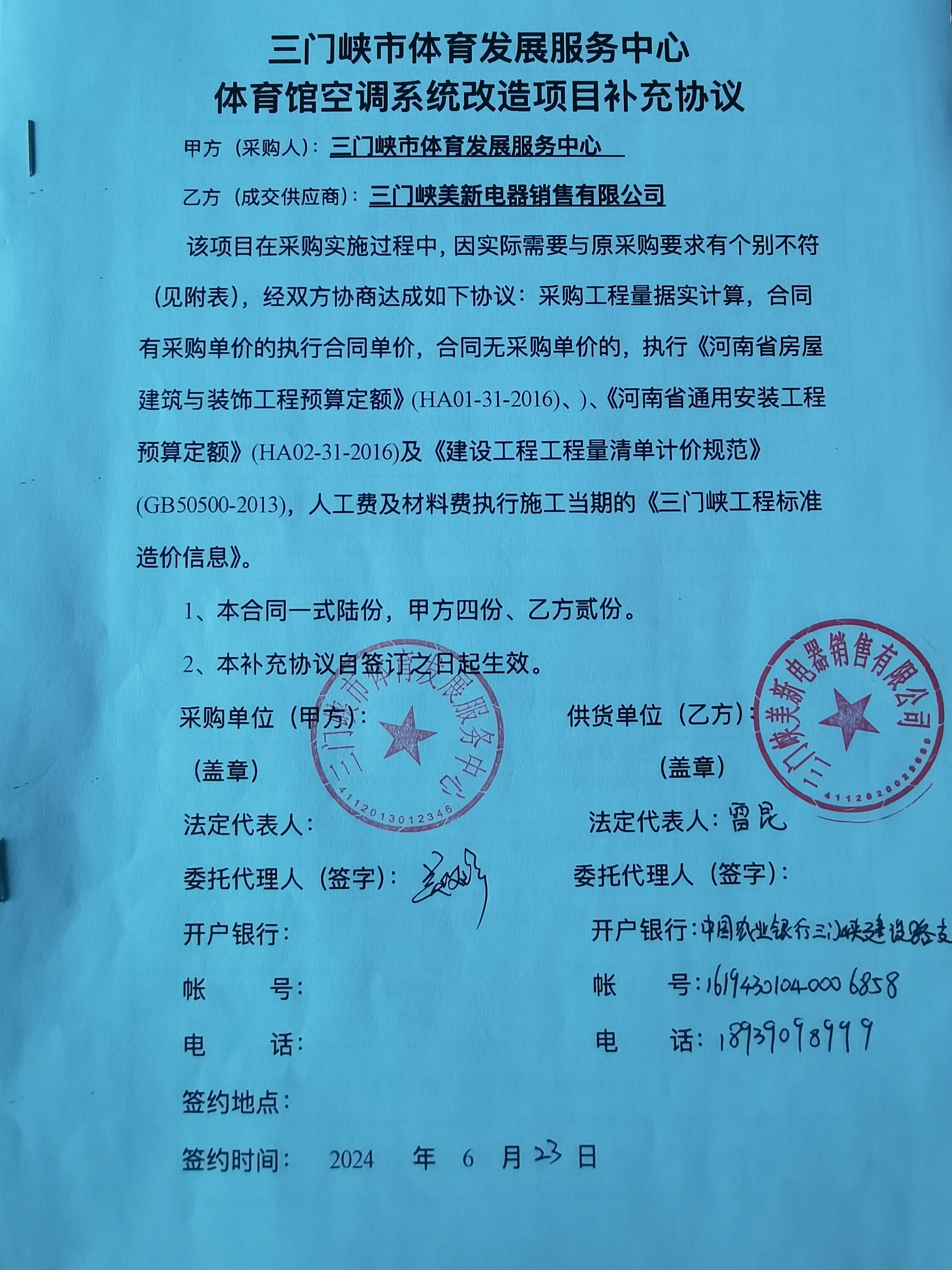 | *.供应商(乙方):三门峡美新电器销售有限公司 | ||||||||||||