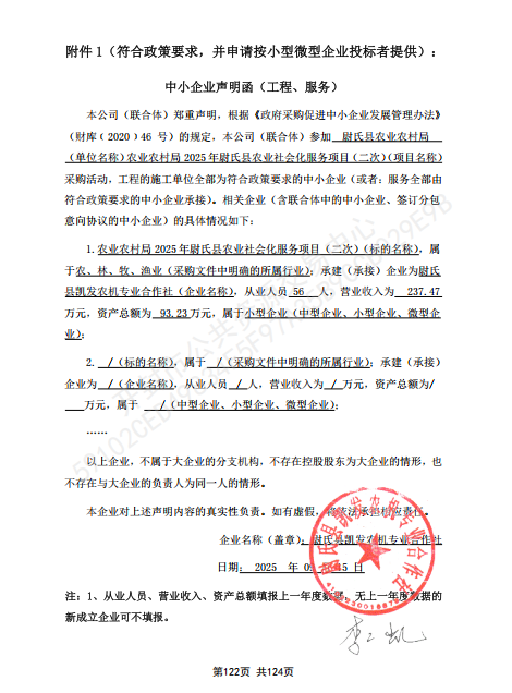 尉氏县农业农村局2025年尉氏县农业社会化服务项目(二次)一包段-中标公告