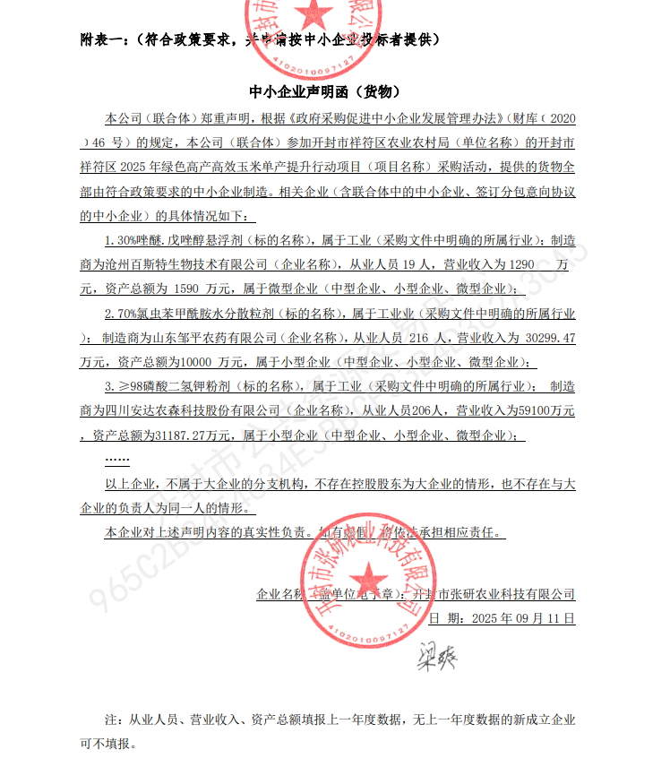 开封市祥符区2025年绿色高产高效玉米单产提升行动项目第三标段中标公告