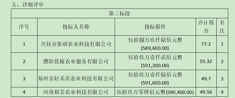 开封市祥符区****年绿色高产高效玉米单产提升行动项目第三标段中标公告