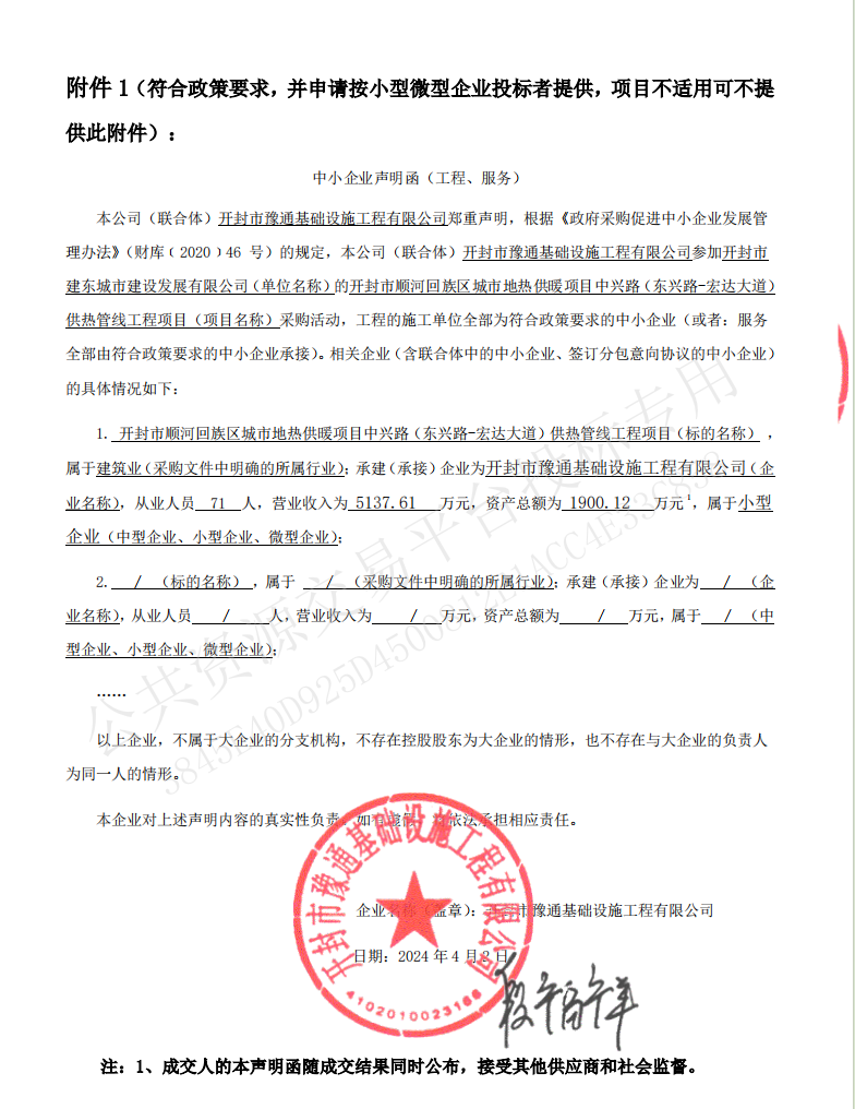 | *、采购项目名称:开封市顺河回族区城市地热供暖项目中兴路(东兴路*宏达大道)供热管线工程项目 | |||||||||||||||||||||||||||||||