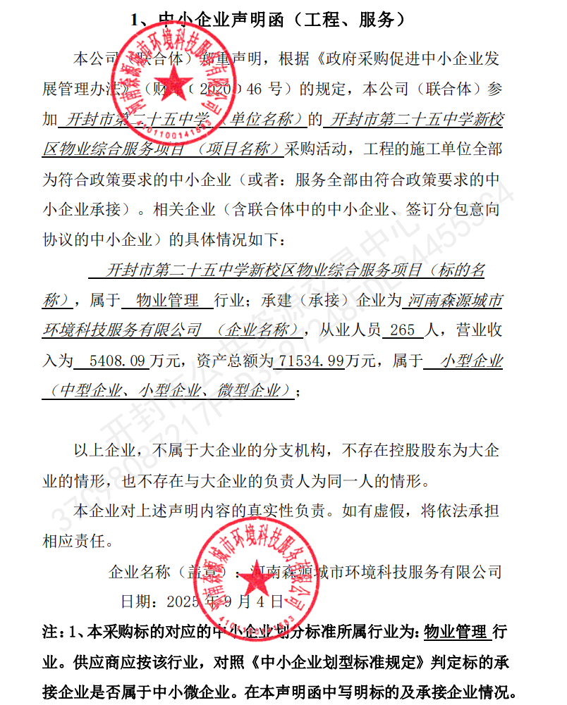 开封市第二十五中学新校区物业综合服务项目-中标公告
