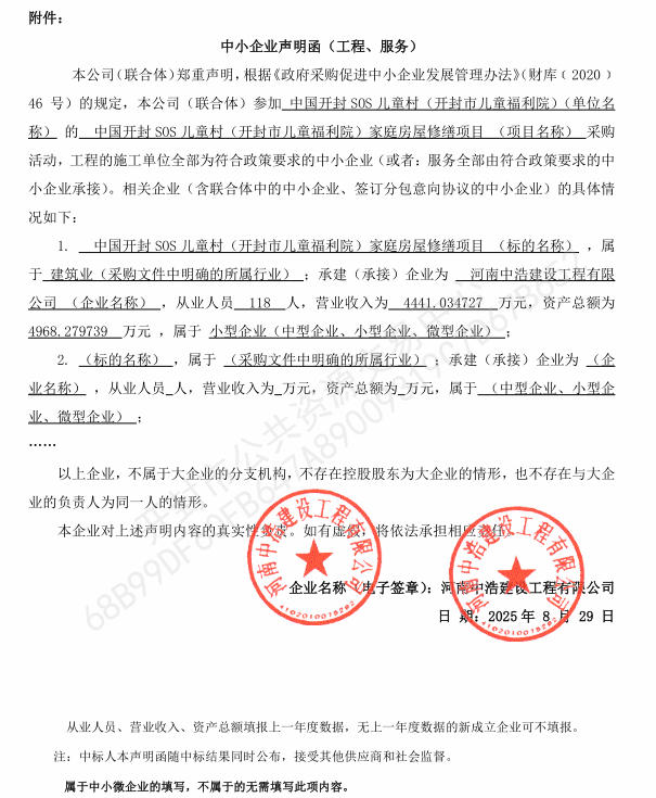 中国开封SOS儿童村(开封市儿童福利院)家庭房屋修缮项目-成交公告