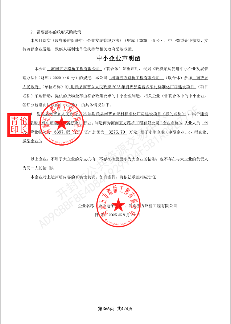 尉氏县南曹乡人民政府2025年尉氏县南曹乡荣村标准化厂房建设项目-成交公告