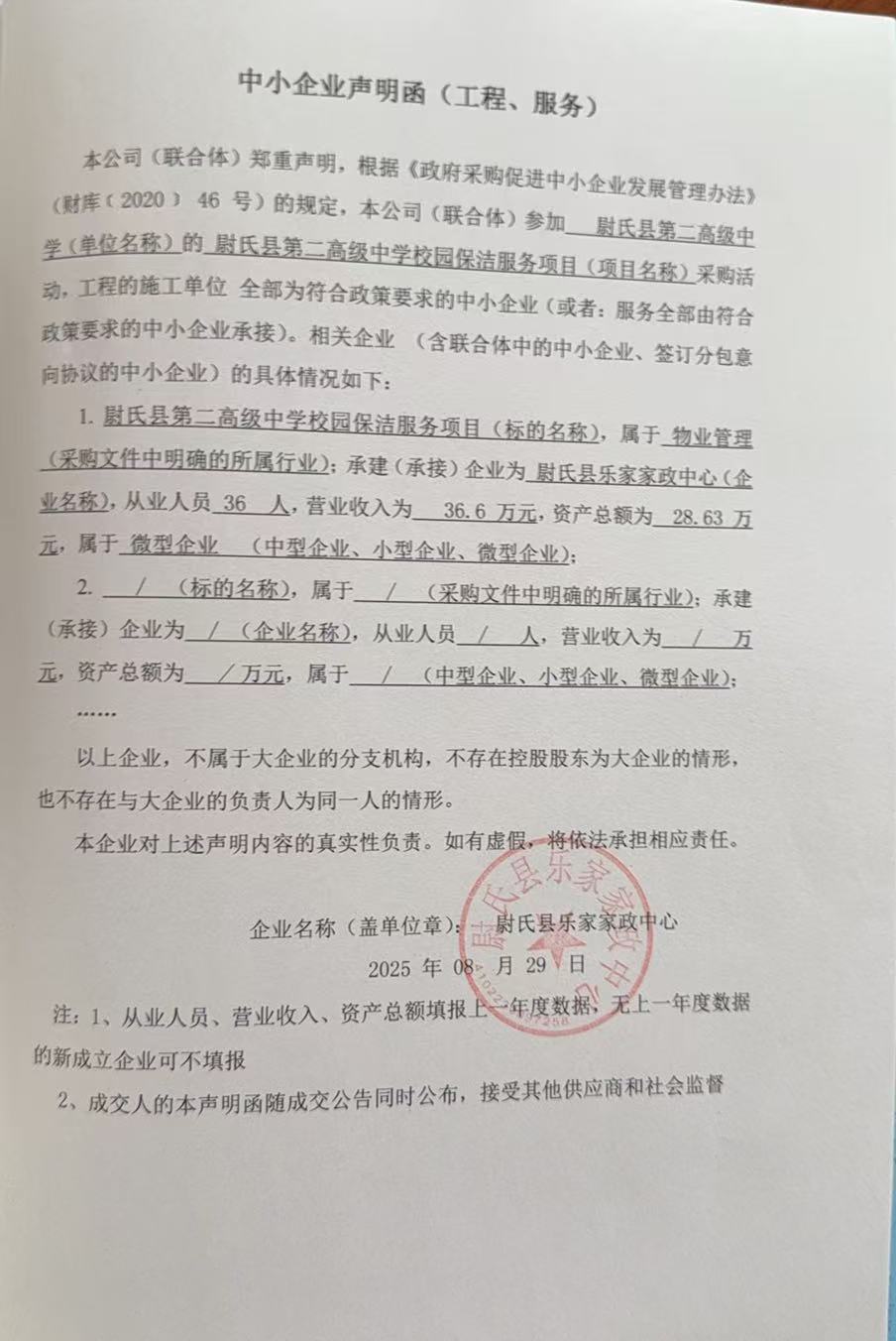 尉氏县第二高级中学校园保洁服务项目成交公告