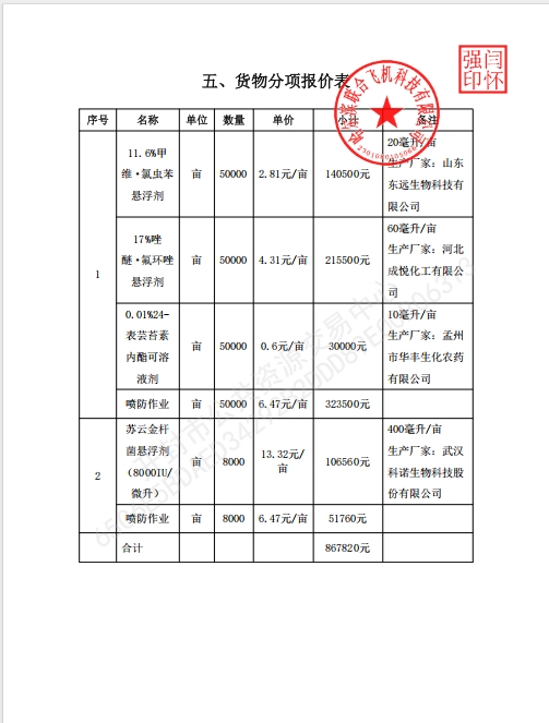 | *、采购项目名称:杞县农业农村局****年农作物重大病虫害防控项目 | |||||||||||||||||||||||||||||||