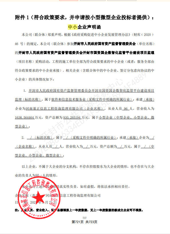 | *.服务内容:包*:开封市人民政府国有资产监督管理委员会开封市国资国企数智化监管平台建设项目监理服务。 *.服务期限:随平台建设期及运维服务期 *.质量要求:质量标准达到国家现行有关质量验收规范标准 *.合同履行期限:随服务期限 | |||||||||||||||||||||||||||||||