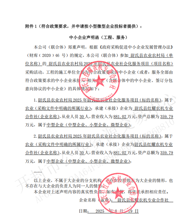 | *、采购项目名称:尉氏县农业农村局****年尉氏县农业社会化服务项目 | |||||||||||||||||||||||||||||||