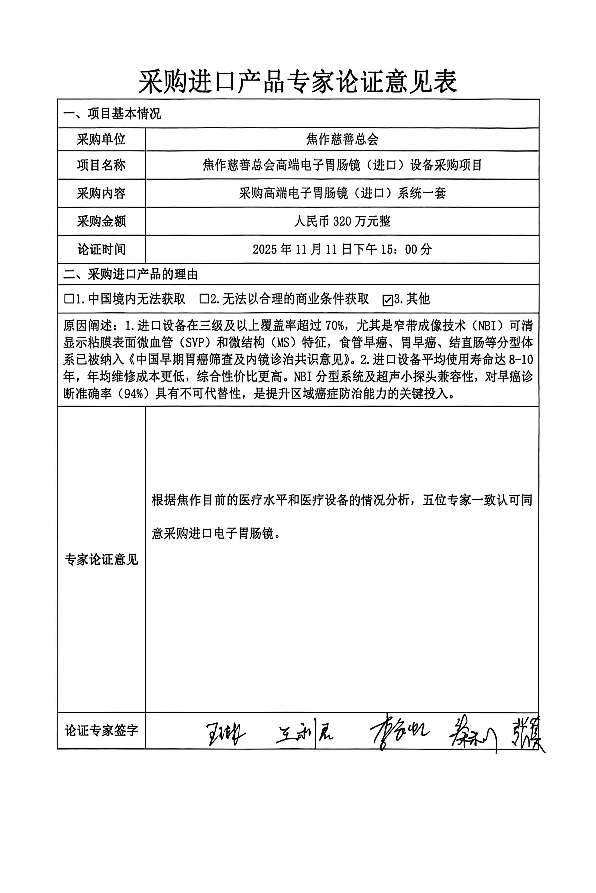 焦作慈善总会高端电子胃肠镜(进口)设备采购项目进口产品采购征求意见公示