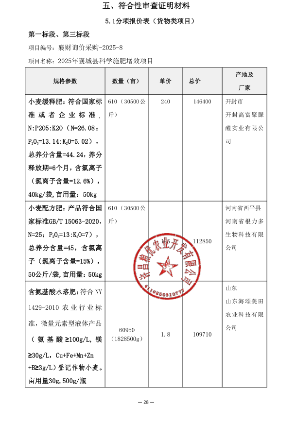 襄财询价采购-2025-8襄城县农业农村局2025年襄城县科学施肥增效项目-成交公告
