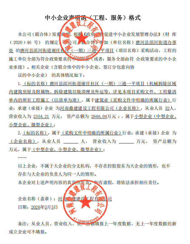 | *、采购项目名称:唐河县滨河街道谢庄社区(一期)三通一平项目 | |||||||||||||||||||||||||||||||