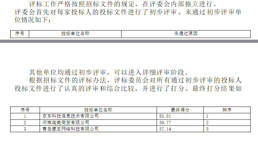 | 本项目公告发布之日同时向中标人发出中标通知书;以邮寄、电子邮件等方式对未通过资格审查的投标人,告知其未通过的原因;参与评审但未中标的,告知其本人的评审得分与排序。 | |||||||||||||||||||||||||||||||