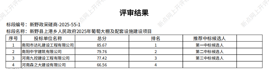 新野县上港乡人民政府2025年葡萄大棚及配套设施建设项目-成交公告