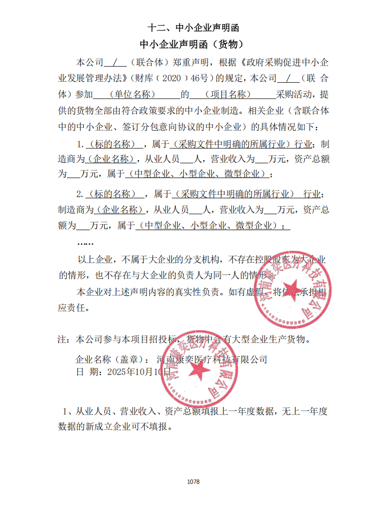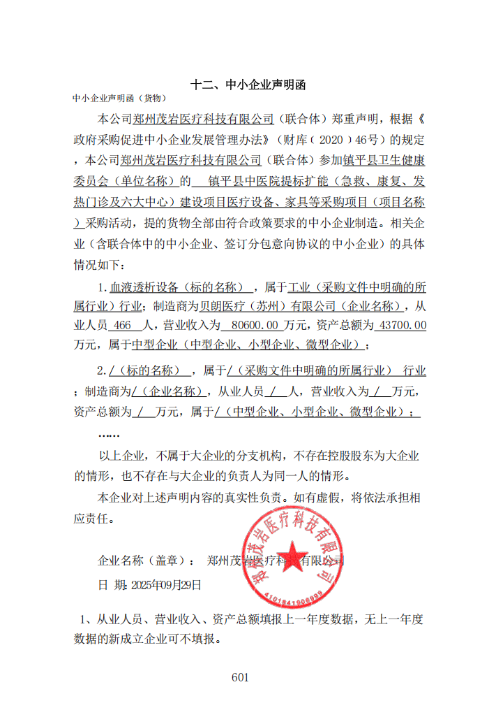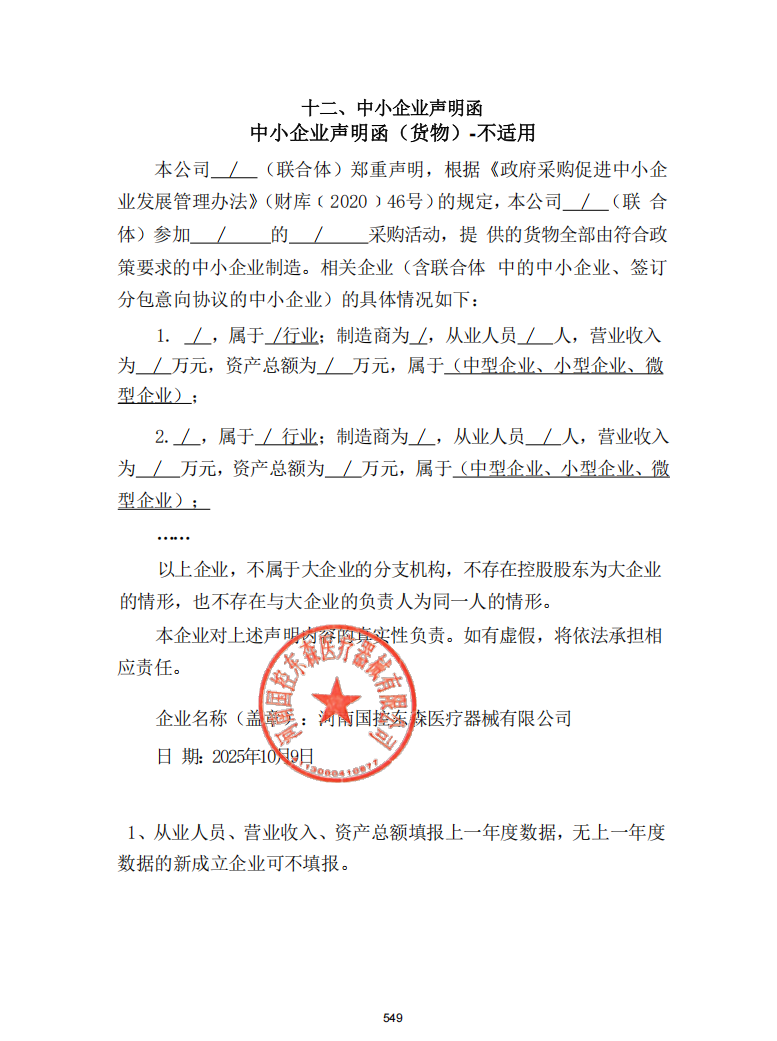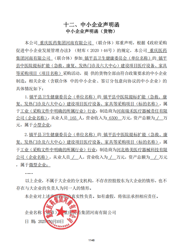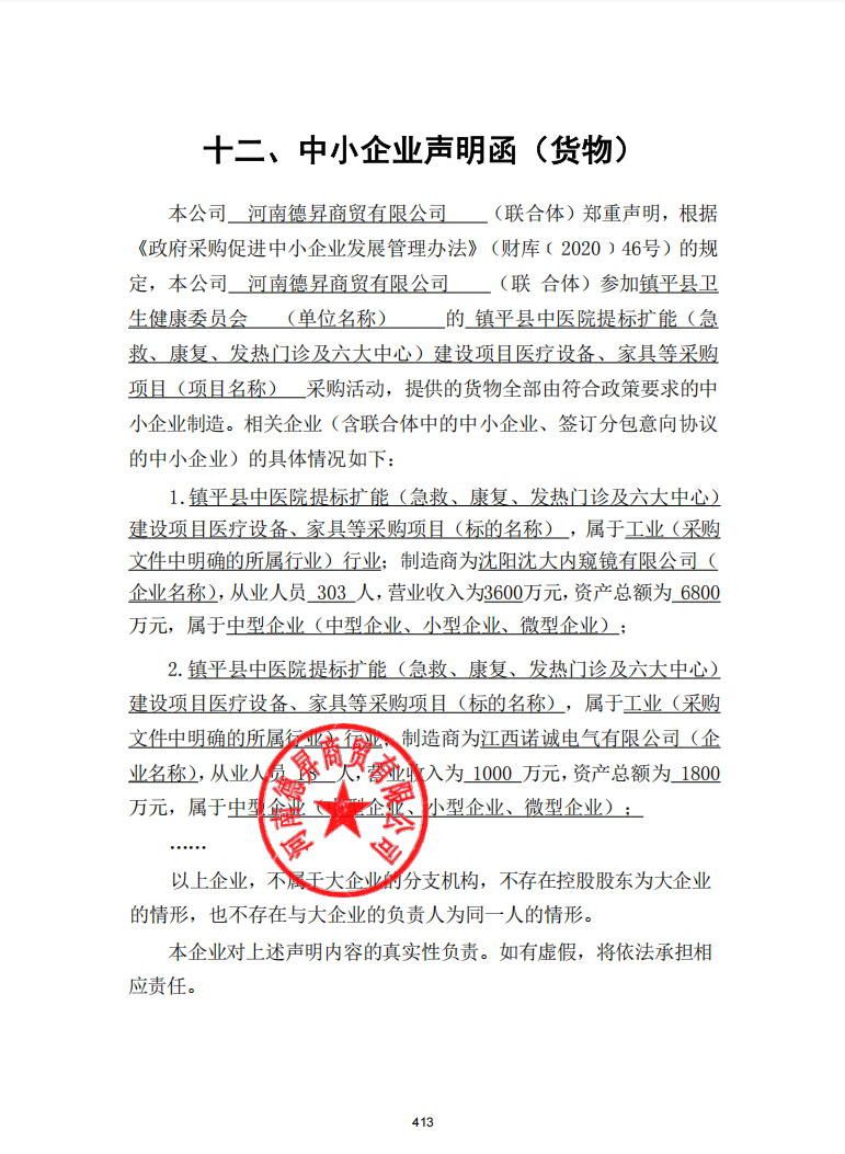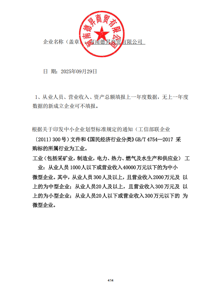 - *标中小企业承诺函.***