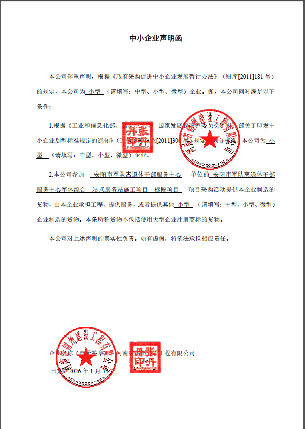 安阳市军队离退休干部服务中心军休综合一站式服务站施工项目一标段项目-成交公告