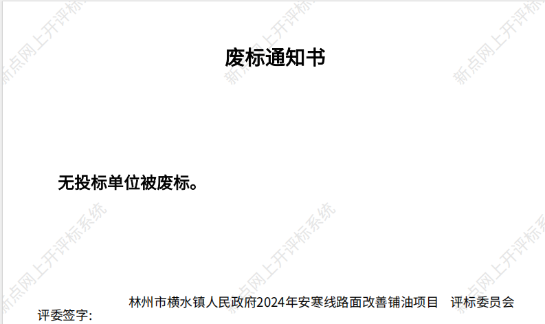 林州市横水镇人民政府****年安寒线路面改善铺油项目*成交公告