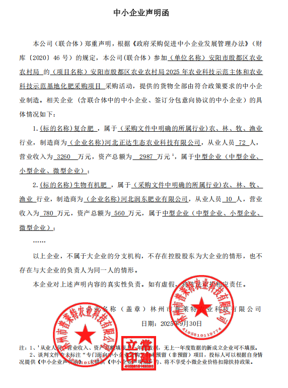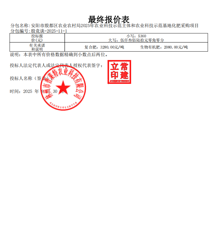 安阳市殷都区农业农村局2025年农业科技示范主体和农业科技示范基地化肥采购项目-成交公告