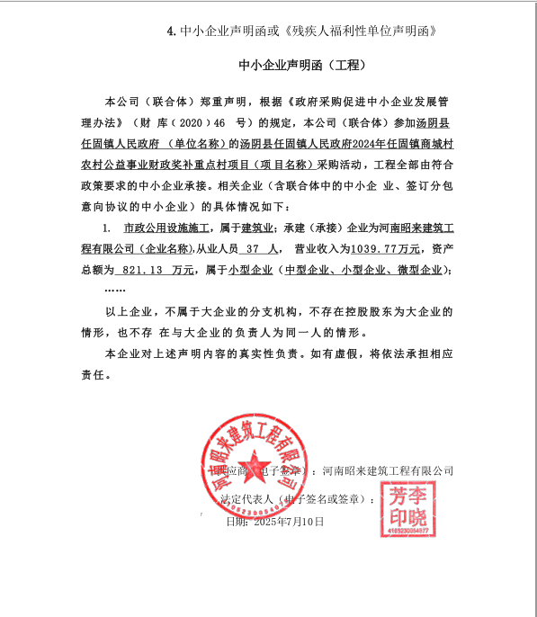 汤阴县任固镇人民政府2024年任固镇商城村农村公益事业财政奖补重点村项目-成交公告