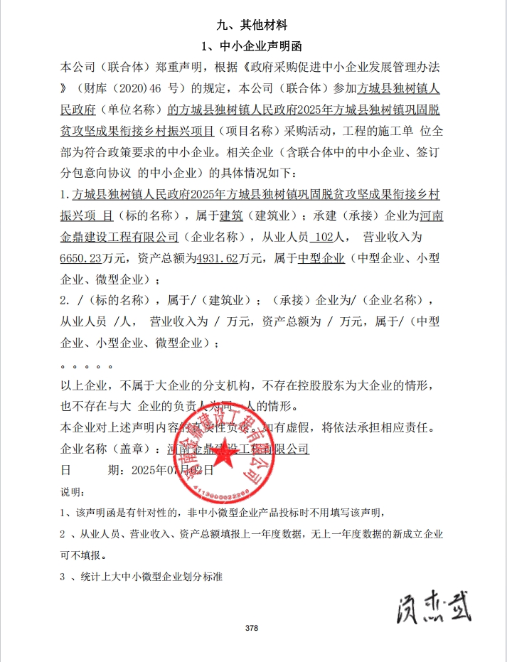 方城县独树镇人民政府2025年方城县独树镇巩固脱贫攻坚成果衔接乡村振兴项目-成交公告