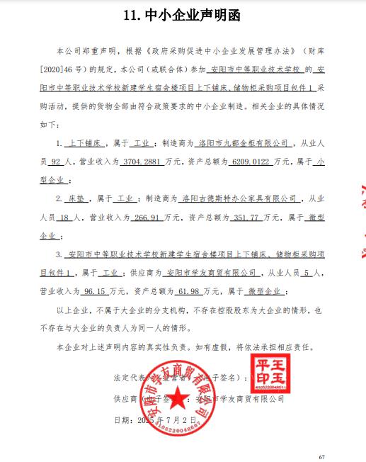 安阳市中等职业技术学校新建学生宿舍楼上下铺床、储物柜采购项目包件1-中标公告