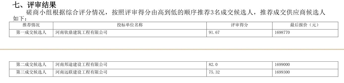 河南/南阳 中标结果