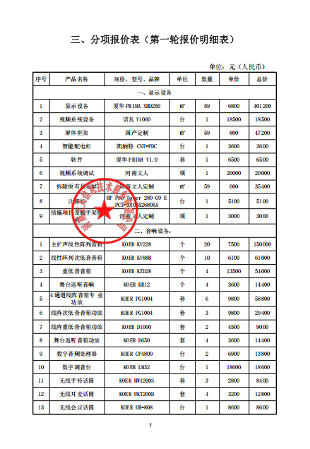 | 各有关当事人对评审结果有异议的,可以在成交公告期限届满之日起七个工作日内,以书面形式同时向采购人和采购代理机构提出质疑(加盖单位公章且法人签字),依据法规规定,质疑函应当有明确的请求和必要的证明材料。以质疑函接受确认日期作为受理时间,逾期提交或未按照要求提交的质疑函将不予受理。另附件分项报价***为第一轮报价,最终成交单价按成交总价和第一轮总价同比计算。 | |||||||||||||||||||||||||||||||