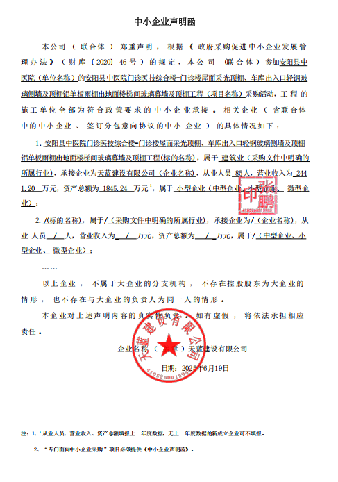 安阳县中医院门诊医技综合楼-门诊楼屋面采光顶棚,车库出入口轻钢玻璃侧墙及顶棚铝单板雨棚出地面楼梯间玻璃幕墙及顶棚工程项目-成交公告