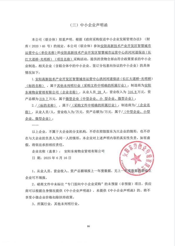 | *、采购项目名称:安阳高新技术产业开发区智慧城市运营中心洪河河道保洁(长江大道桥*光明桥) | |||||||||||||||||||||||||||||||