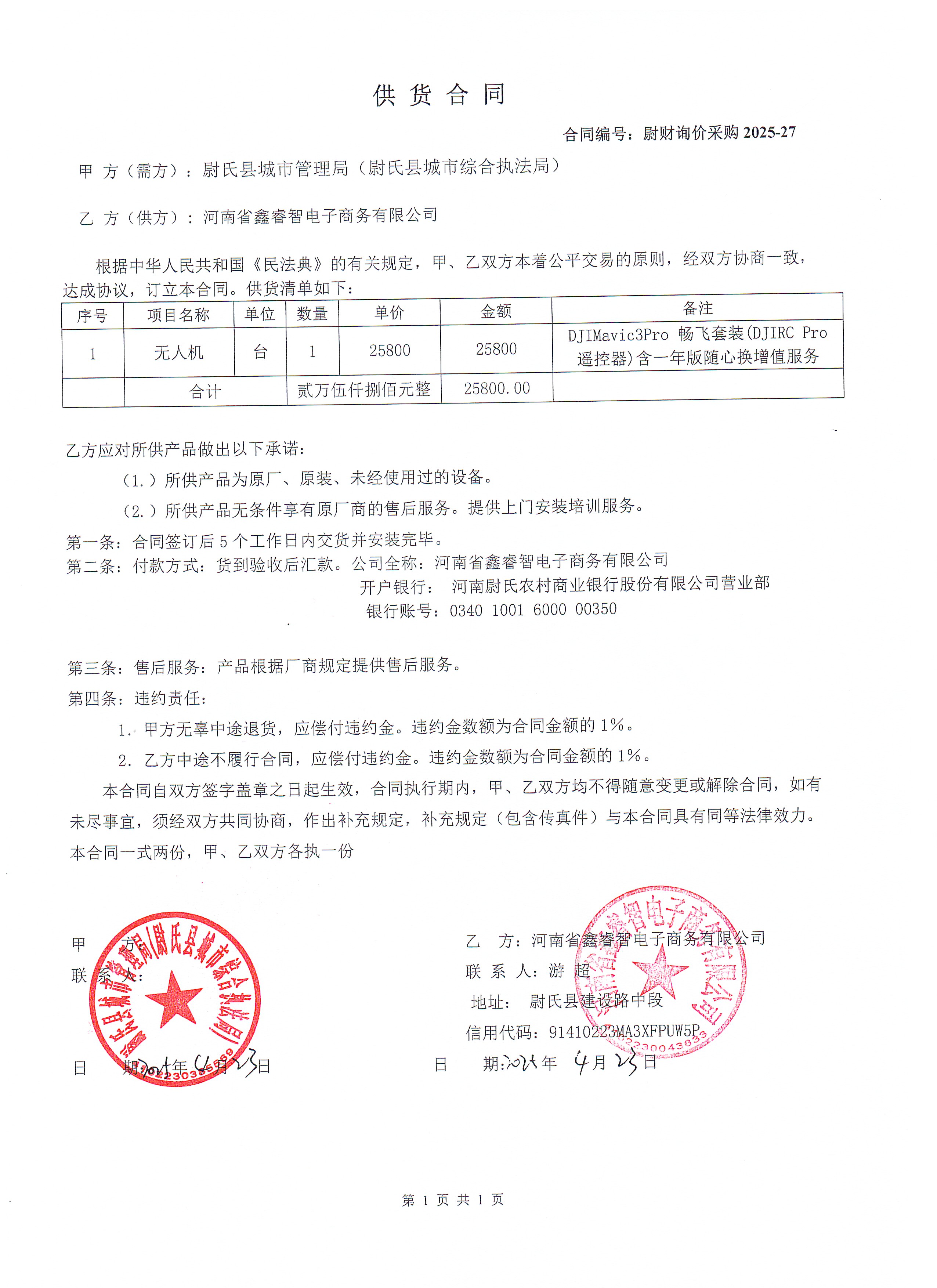 | 一、合同编号:尉财询价采购********* | ||||||||||||