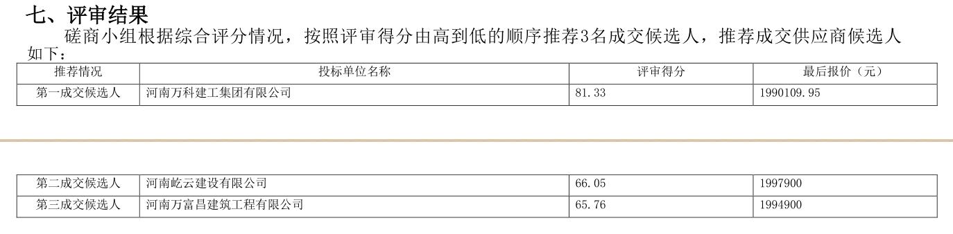 河南/南阳 中标结果