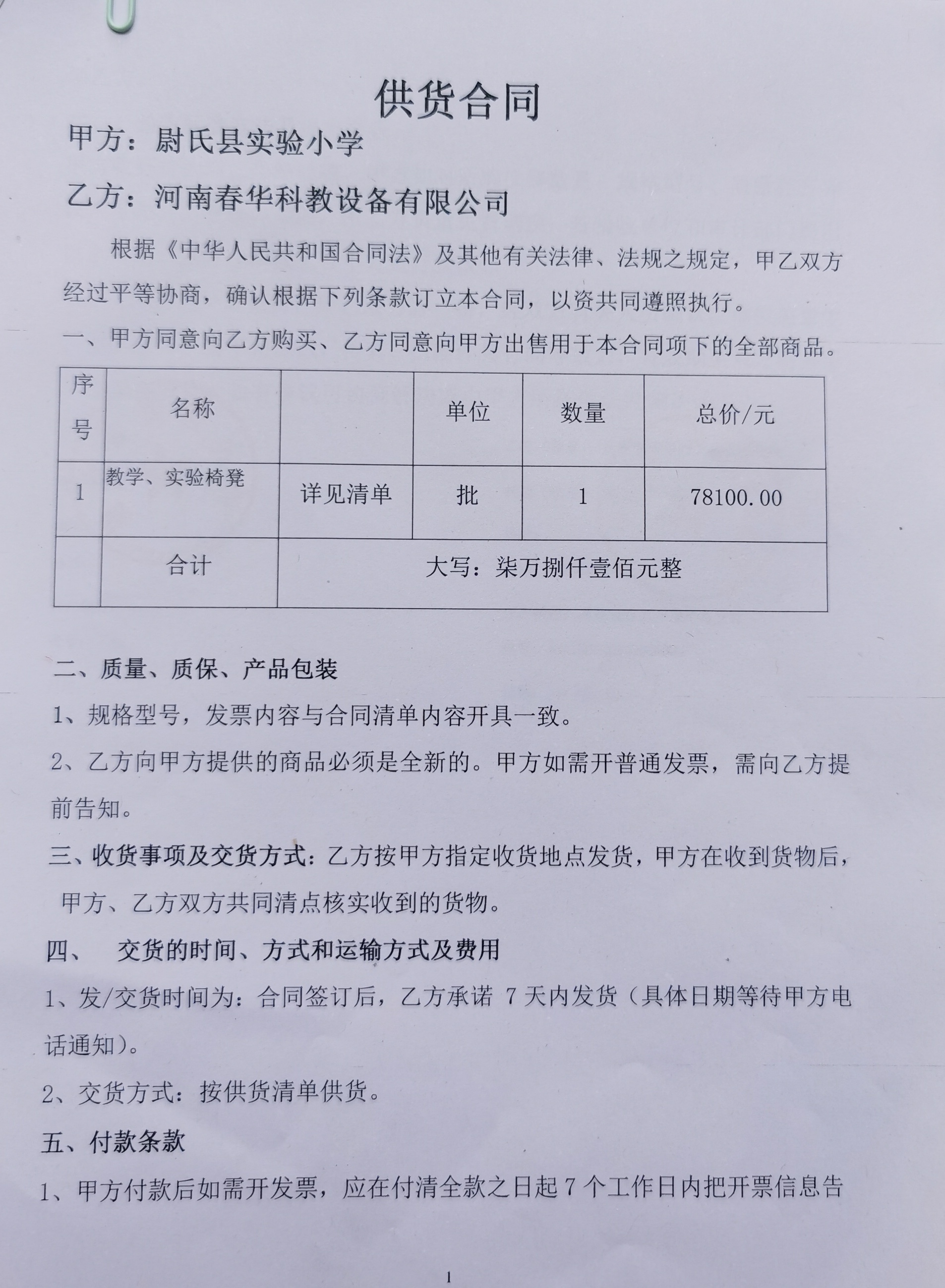 | *.供应商(乙方):河南春华教科设备有限公司 | ||||||||||||